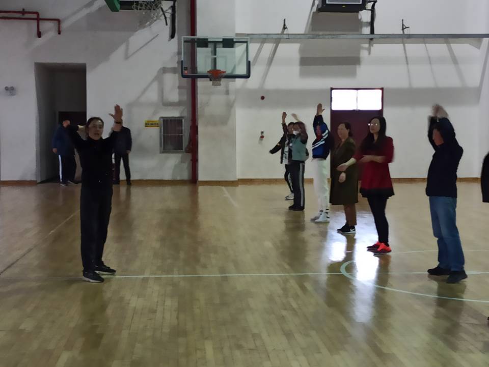 冬至以来,虽然气温下降,但教职工锻炼身体热情不减,广播操训练活动持续进行。工会组织大家利用课余时间加紧训练,沈银芳老师全程指导,朱主席现场督促,整个训练紧张有序。