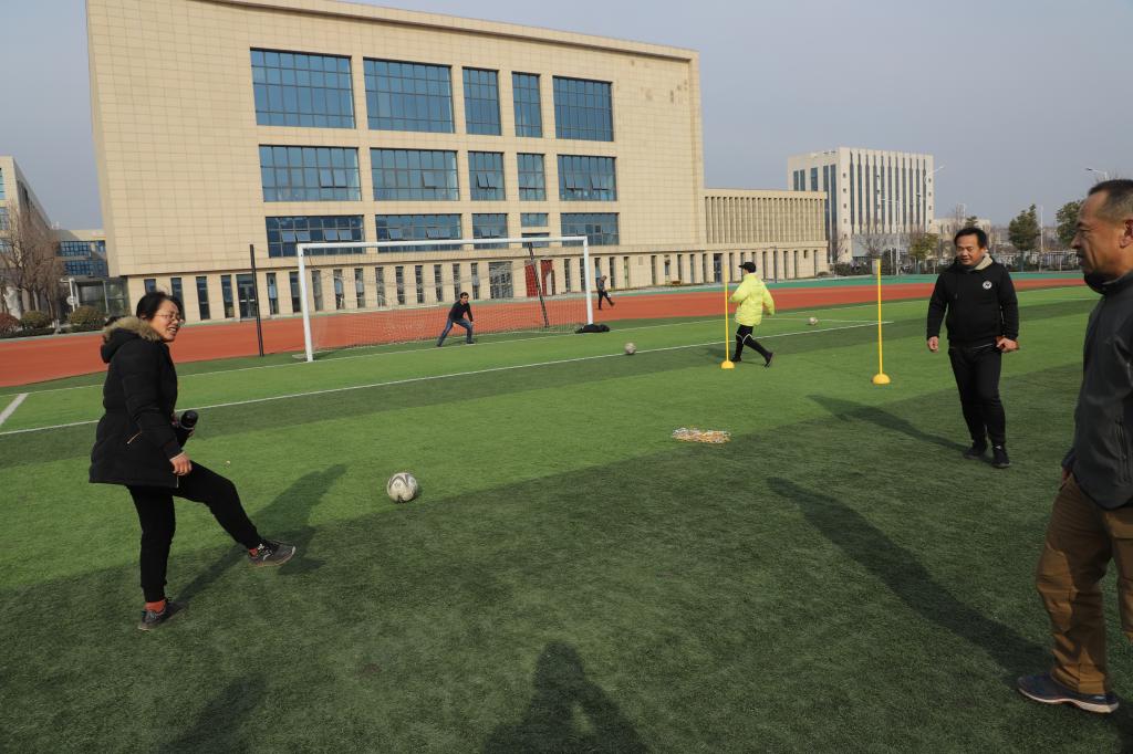 运动场上不时响起“加油加油……”的呐喊声,欢声阵阵,笑语连连,比赛竞争激烈而又不失温馨。加油声、呐喊声和欢呼声荡漾在足球场上空。老师们在比赛项目中玩得不亦乐乎,让大家重拾了以前的记忆!