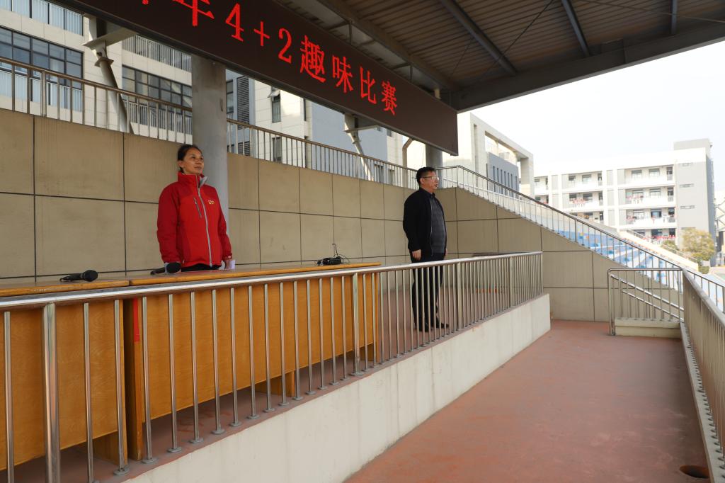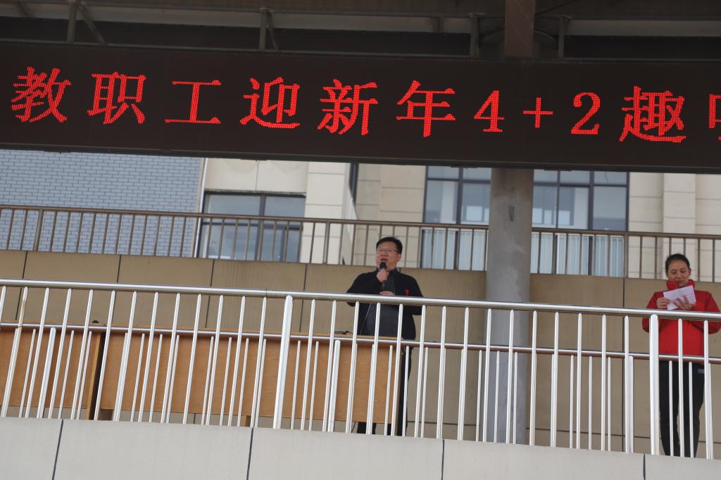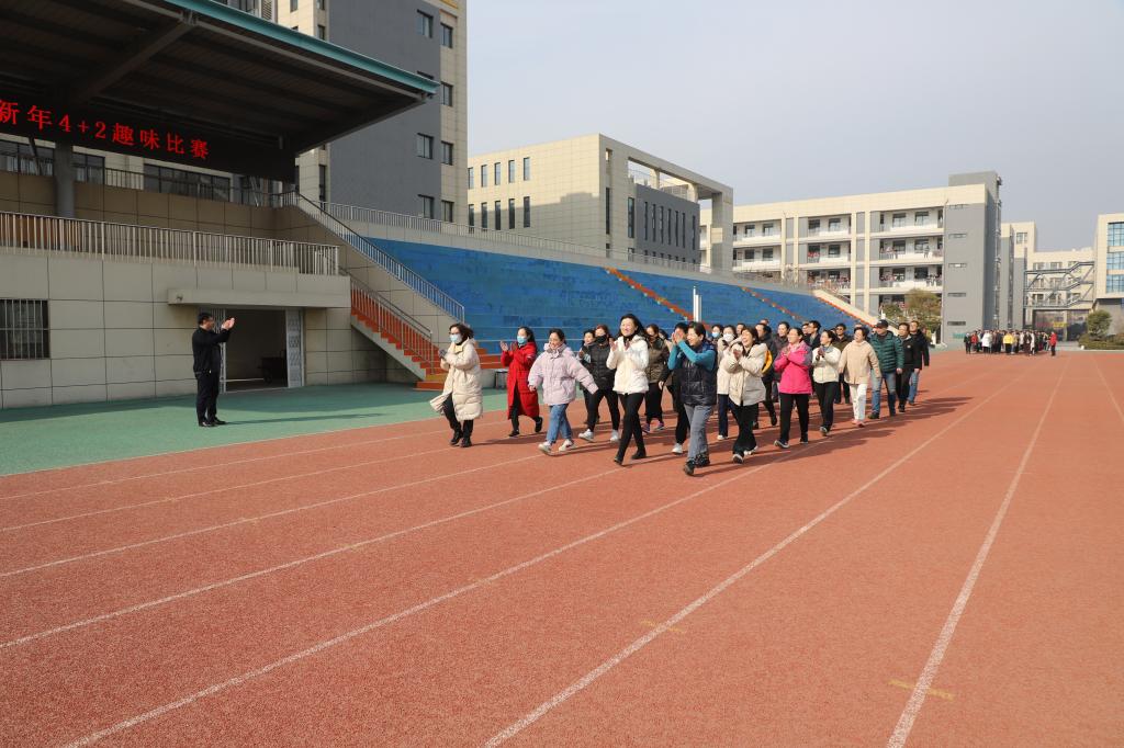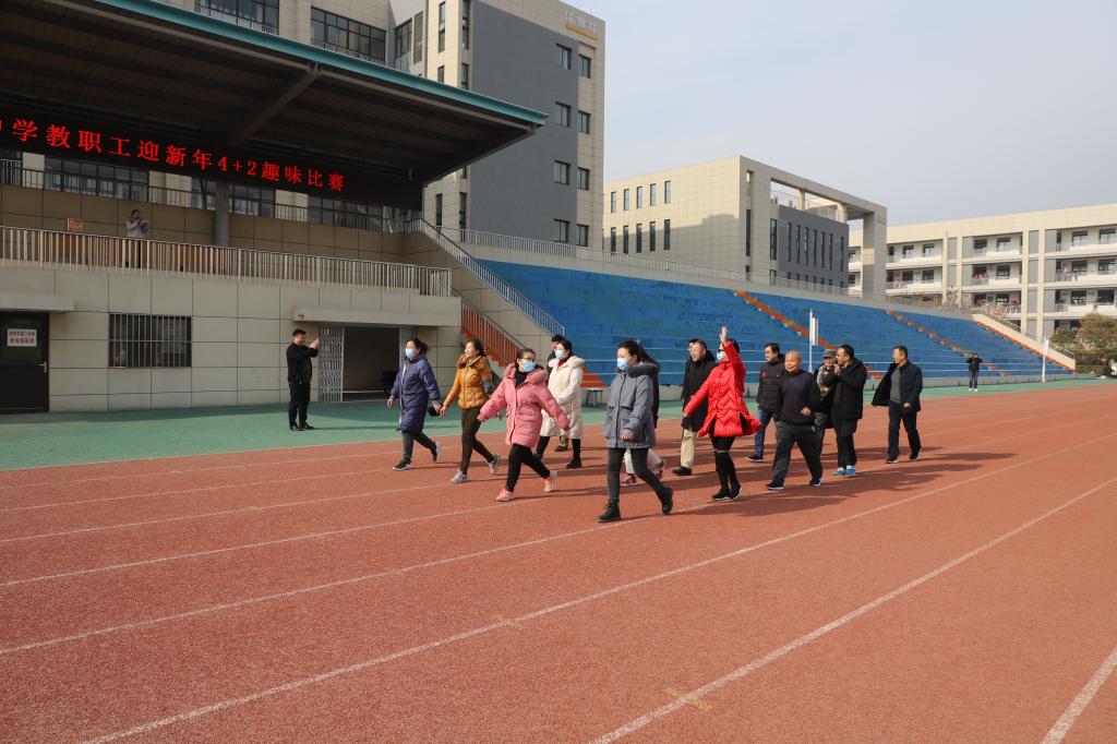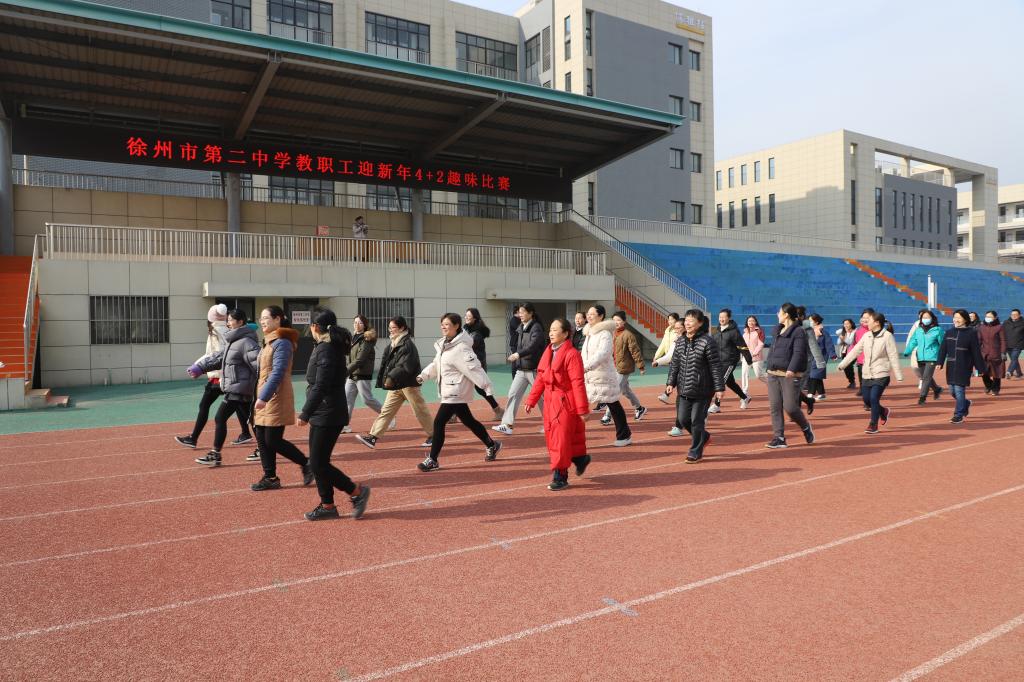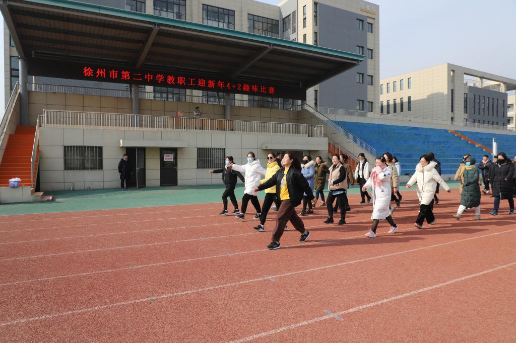 为迎接新年,丰富我校教师课余生活,增强教师健康意识,提高团队凝聚力,搭建教职工沟通交流平台。12月31日下午,徐州市第二中学教职工迎新年4+2趣味比赛在我校体育场隆重拉开帷幕。本次教职工趣味比赛由学校工会组织,整个比赛全体教职工积极参与。13时整,各代表队依次进场。