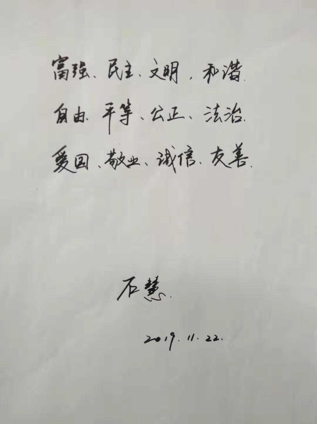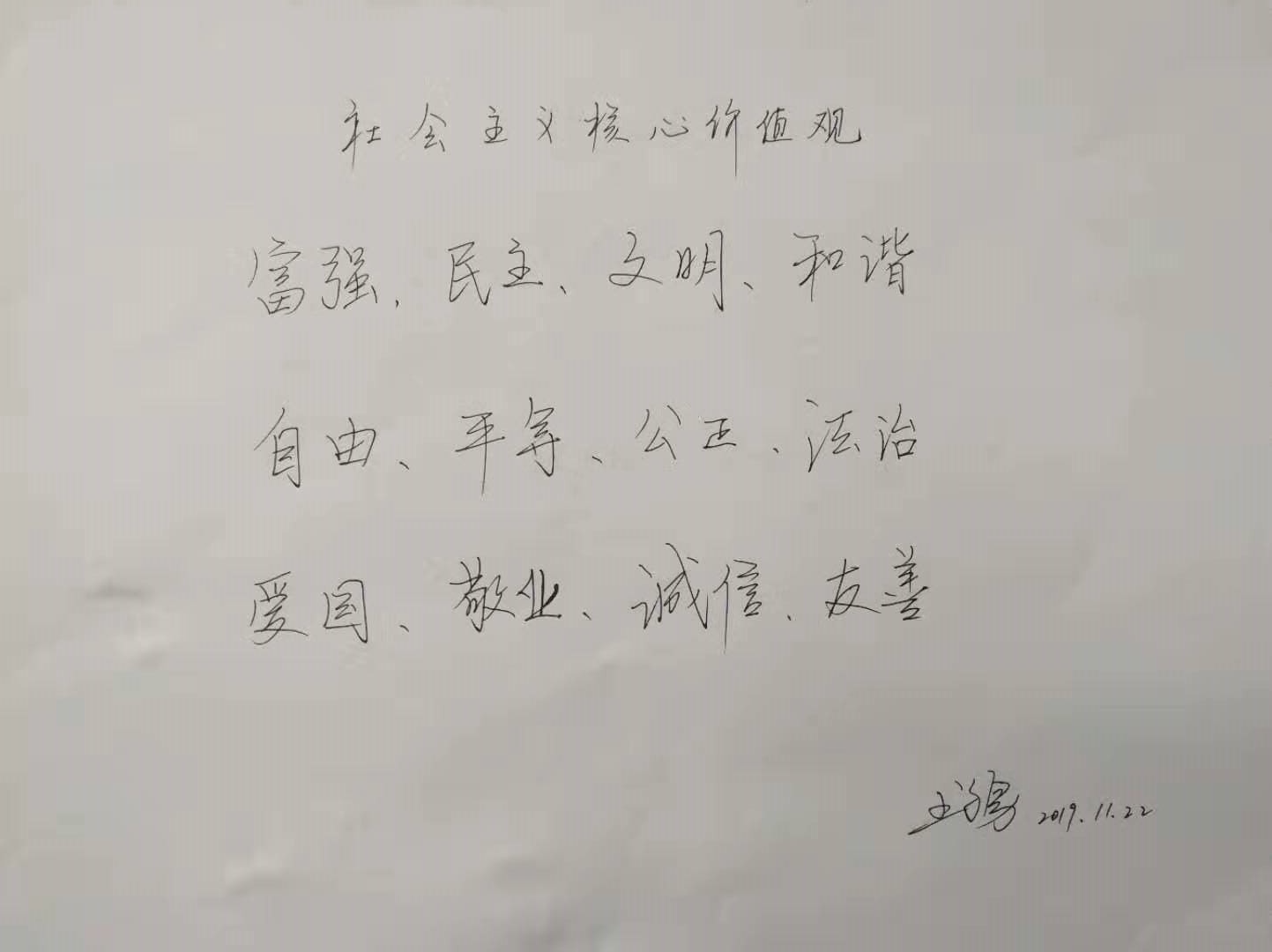 3、2019年11月25日周一完成交给工会组长,并当面背诵“社会主义核心价值观”。