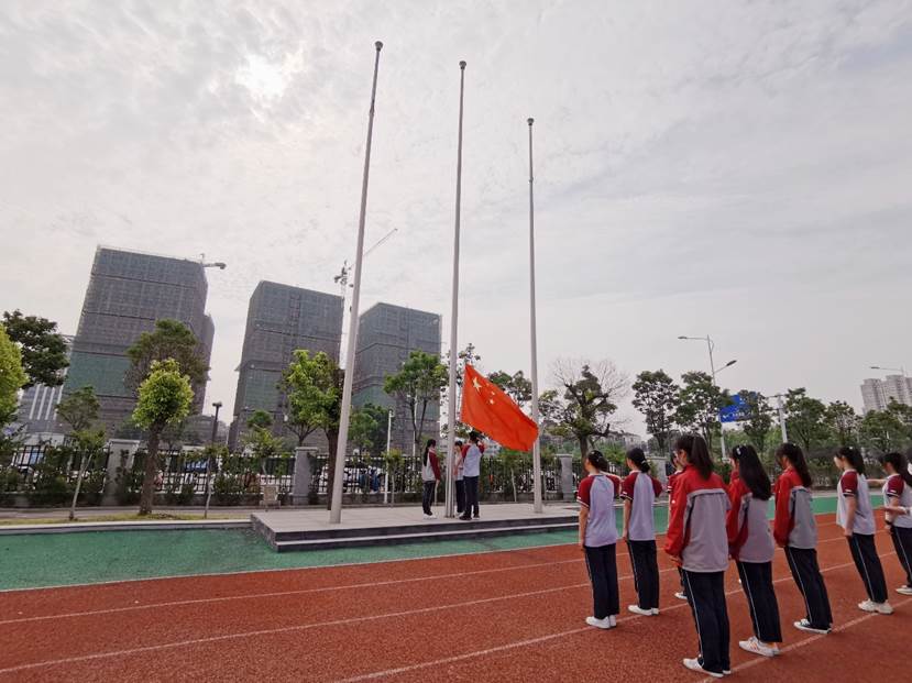 大会在气势恢宏的升旗仪式中拉开帷幕,全校师生满怀敬意,齐声高唱国歌,激扬的国歌激发了师生们必胜的信心。