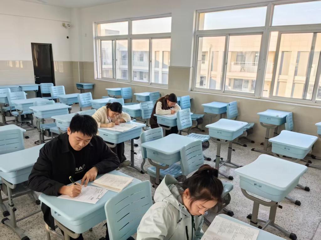 比赛面向近五年入职的青年教师,覆盖九门学科。在教学处的精心组织下,参赛教师被安排在高三年级五楼指定考场,与其所教学段的考生同步开始答题。考场秩序井然,监考、收卷流程规范严谨。赛后,所有试卷均密封姓名,并由学校组织进行集中、公正的阅卷与评比。