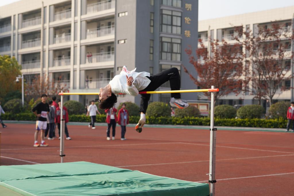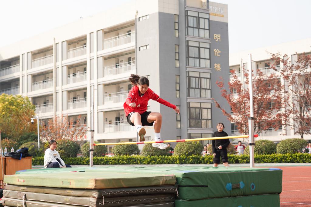与此同时,田赛场地同样精彩纷呈。高一女子跳高的选手们身姿轻盈,一次次跃过升高的横杆;高一、高二年级的女子仰卧起坐赛场,同学们以顽强的毅力挑战极限;高三的学姐们在立定跳远场地展现着青春的爆发力;高三男子跳高赛场更是强强对话,每一次成功的过杆都赢得满堂喝彩。