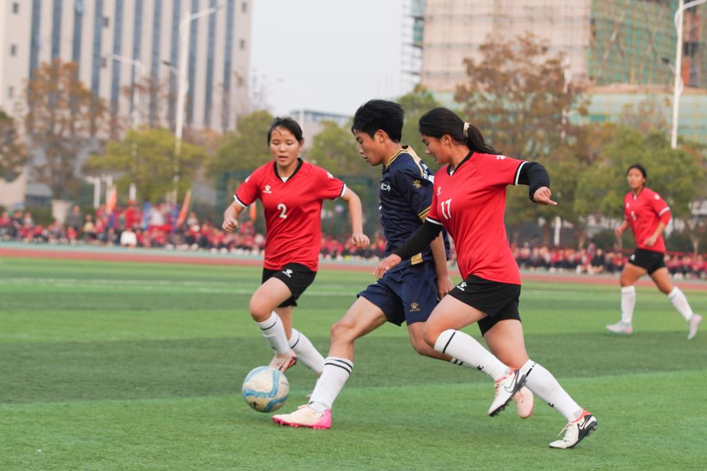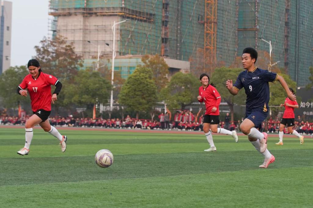 备受期待的校园男女足对抗赛,全程洋溢着热血,将赛事推向了高潮。中场休息时分,青春洋溢的拉拉队带来了动感十足的表演,她们用活力的舞步和灿烂的笑容点燃了全场,为下半场的决战做足了铺垫。比赛中,双方队员全程保持着高昂的斗志,攻防转换间尽显默契,面对对方的紧密防守毫不退缩,一次次奋力冲刺撕开防线,摔倒后迅速起身的坚韧、拼抢中护球的执着,都彰显着少年人的热血担当。所有队员的全力以赴、默契配合,每一次奔跑、抢断与射门都凝聚着对集体的热爱。最终,比赛以2:2的比分定格了这场势均力敌的较量。点球大战中,女足队员凭借沉着稳健的发挥以5:4的比分收获胜利,而男足队员们即便在点球大战中未能如愿,他们依旧用掌声致敬对手、用微笑接纳结果,这份从容与豁达,同样令人动容。比赛在结果上总会有输赢,但所有运动员用汗水诠释对足球的热爱,用行动践行集体荣誉感,这份为团队争光的执着与担当,远比比分更有分量。