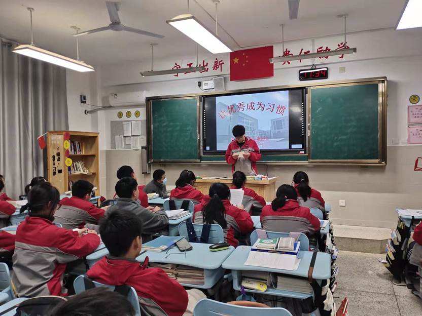 阅读清华学长写给高中生的一篇文章“让优秀成为习惯”,全班学生书写读后感,并选几位学生在班会上进行分享。