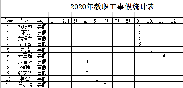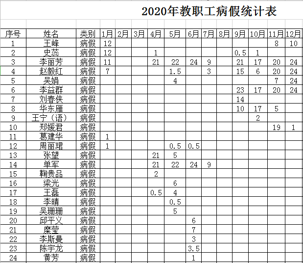 请各位老师核对2020年1-9月份病事假天数,如有问题1月6日前向校办反馈。