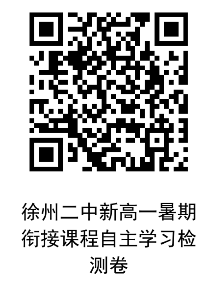 为了更好的让学生保持学习状态,做好初高中的有效衔接,减少疫情对学生学业的影响,现发布“徐州二中新高一暑假衔接课程自主学习检测卷”、“徐州二中学生常规要求”、“徐州二中高一新生自主学习资源”、“徐州二中致新生家长一封信”,请长按识别二维码查收、下载、打印,并按照要求高质量独立完成。请各位家长和同学密切关注学校官网和公众号。