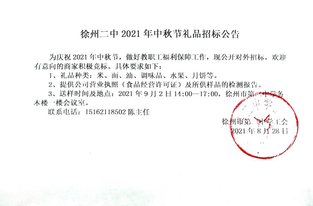 徐州市第二中学2021年中秋节礼品招标公告