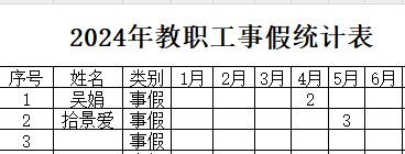 2024年1-6月份教职工病事假统计