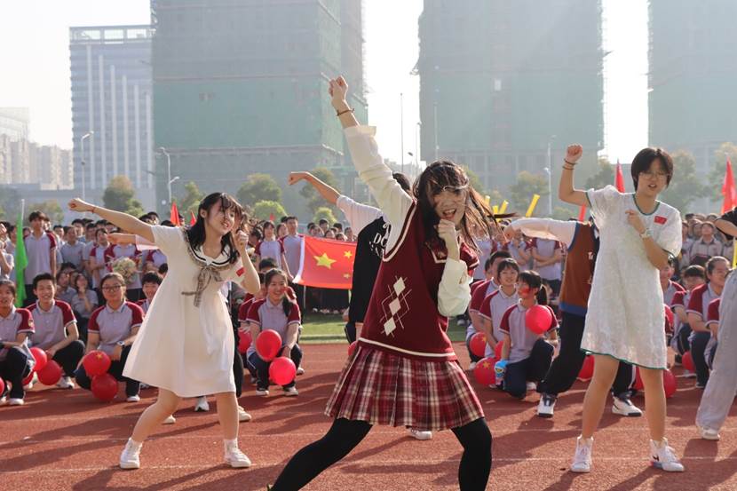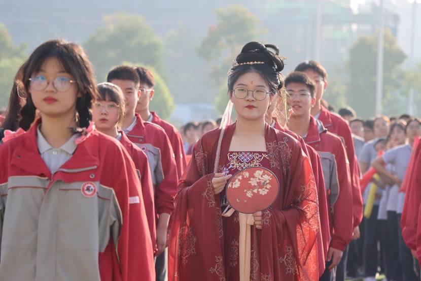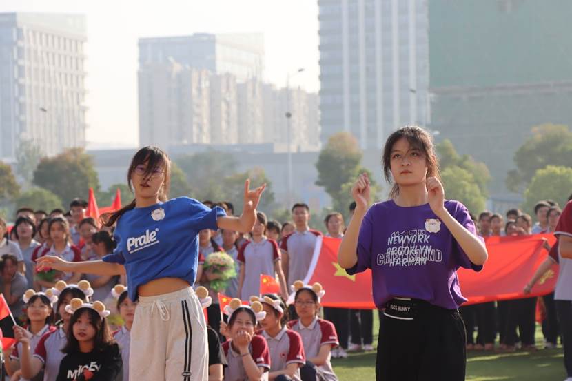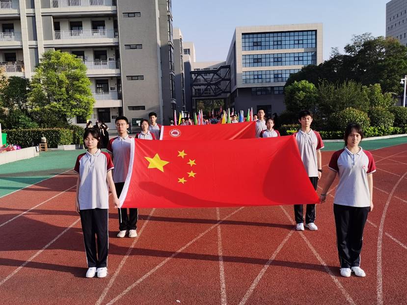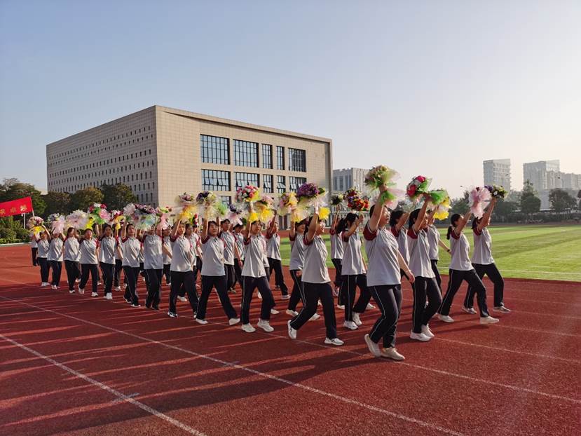 首先出场的是校国旗方队和彩旗方队。同学们个个精神抖擞,步履坚定。招展的红旗,纷飞的彩旗,象征着二中人赓续红色使命,不忘教育初心,永远走在教育战线的前列。