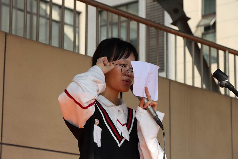 随后,张磊老师、高一( 3 )班朱珠同学分别代表全体裁判员与全体运动员宣誓。
