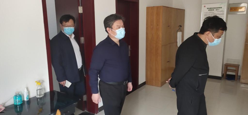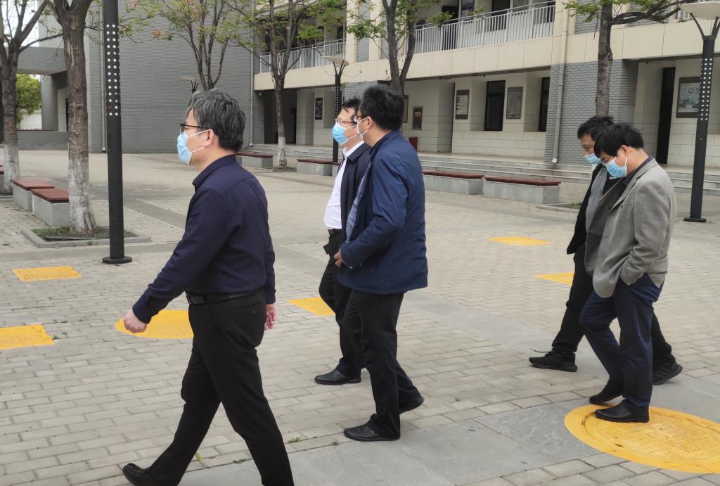 4月12日下午,徐州市教育局副局长李清、职社处处长李乐、中小学卫生保健所所长张兆成一行来校检查疫情防控并对我校高三复课准备工作进行指导,校长孟彦、副校长张功忠、刘洋等陪同检查。