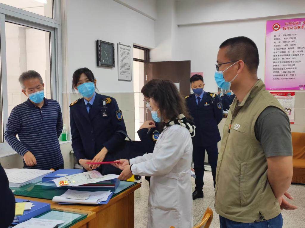 4月25日上午,徐州市卫生监督部门检查组一行到我校进行疫情防控专项检查,张功忠副校长、刘洋副校长陪同检查。