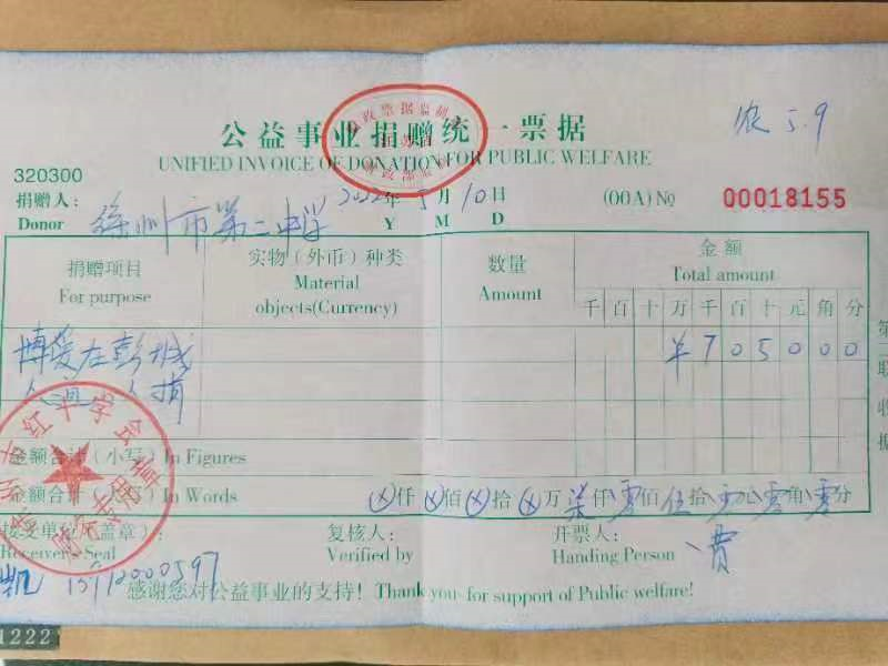 为深入贯彻党的十九大和十九届历次全会精神,以习近平新时代中国特色社会主义思想为指导,全面落实总书记视察江苏、视察徐州重要讲话指示精神,紧紧围绕实现“人民对美好生活的向往”这个目标,大力倡导扶危济困、敬老助残、关爱生命、助人为乐的中华民族传统美德,为加快建设“强富美高”新徐州提供精神动力和人道力量。近日,我校工会依据相关文件精神,组织开展了2022年度“博爱在彭城,人道万人捐”捐款活动,共计捐款7050元,学校工会及时把募捐情况公示并全部上交市十字会。