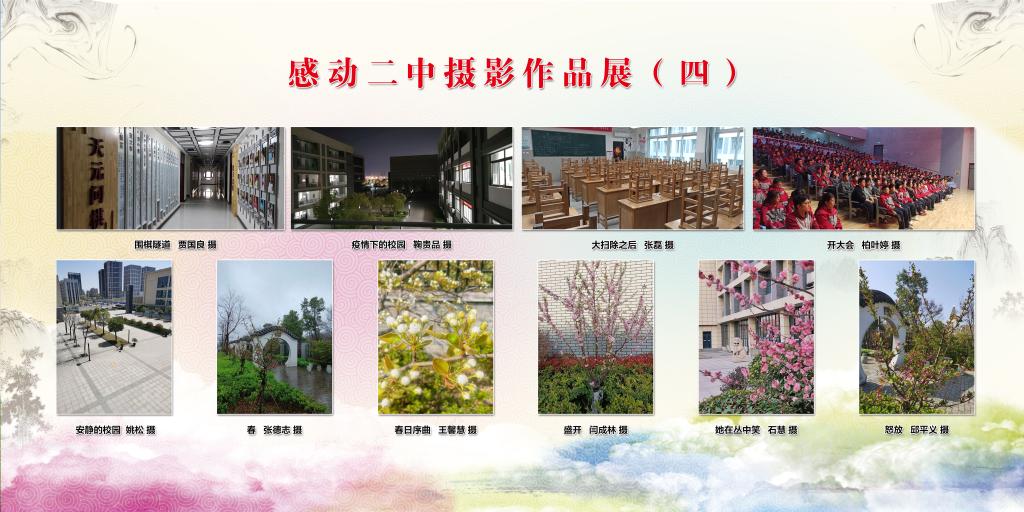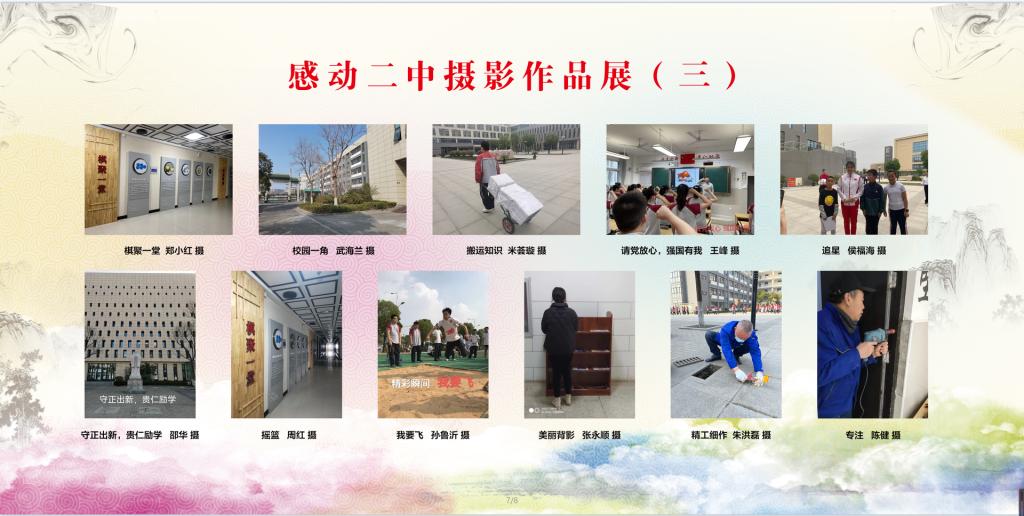 活动期间,广大教职工积极参与、纷纷投稿,紧扣“感动二中”主题,精心拍摄校园风情和育人场景,精挑细选出最好的摄影作品。经过组委会筛选,优秀摄影作品近期在崇德楼一楼进行展示,同时我校工会组织广大教工评委对摄影作品进行评选。