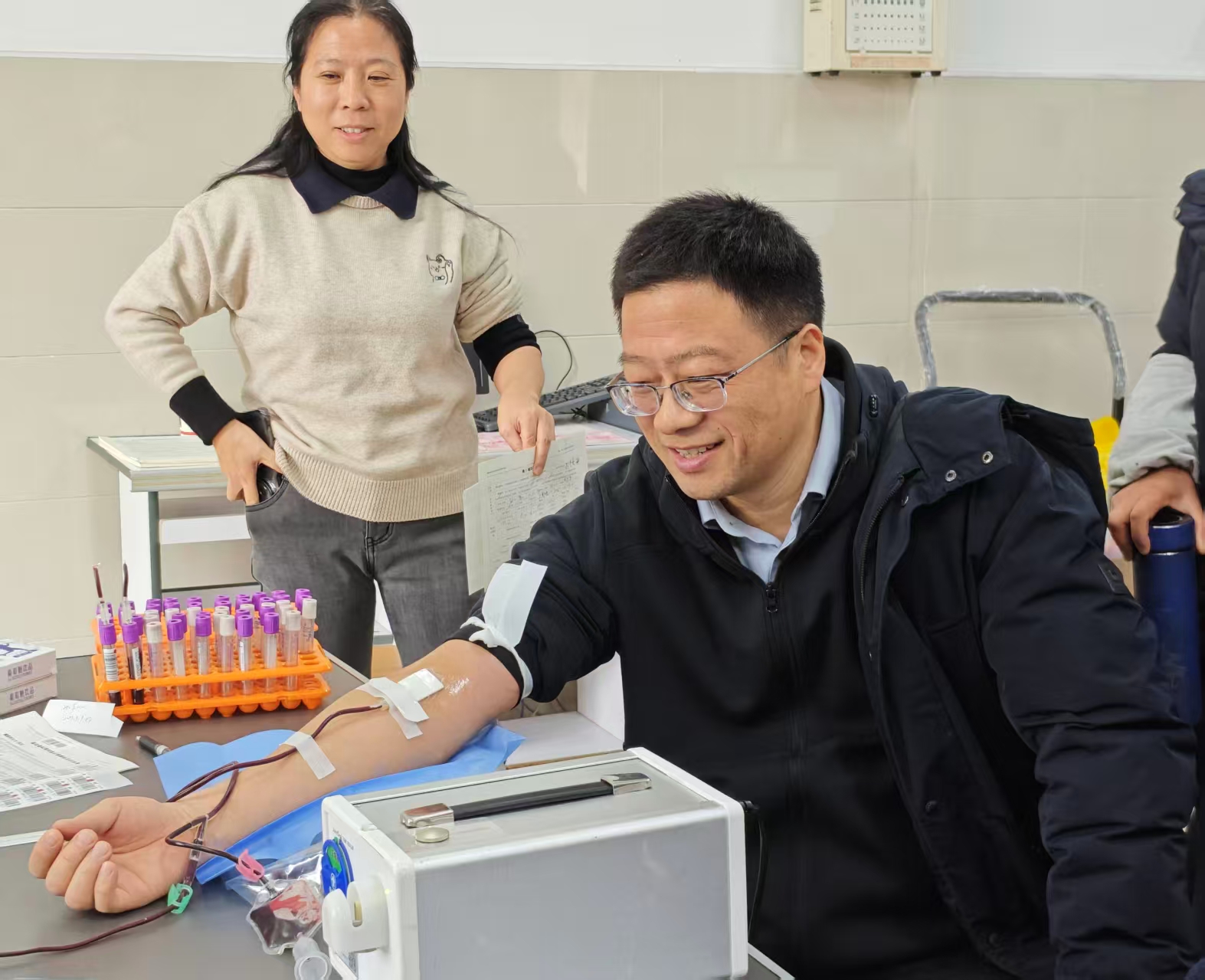 为弘扬无私奉献精神,汇聚二中爱心力量,2025年12月19日上午,我校工会联合徐州市红十字血液中心,在校医务室组织开展了“暖冬献热血 师魂护生命”爱心献血活动。