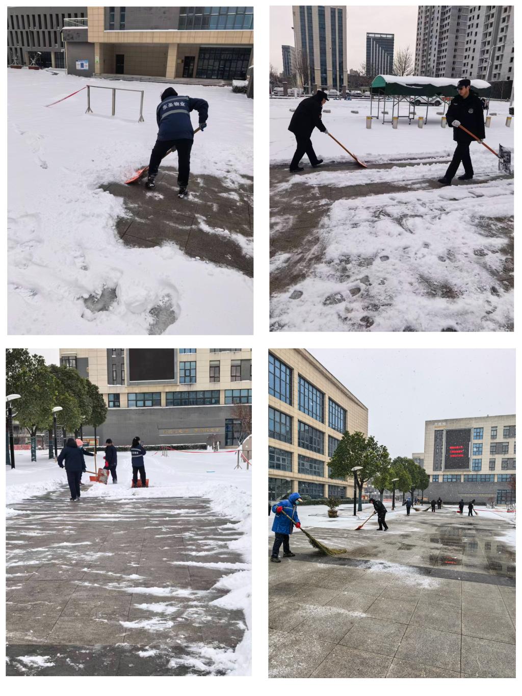 寒风凛冽,积雪厚重,但参与清扫的教职工们干劲十足。铁锹与地面摩擦的声响、扫帚清扫积雪的沙沙声,奏响了一曲动人的劳动乐章。他们的脸庞冻得通红,却无一人退缩,用实际行动融化冰雪,开辟出一条条“平安路”、“暖心道”。