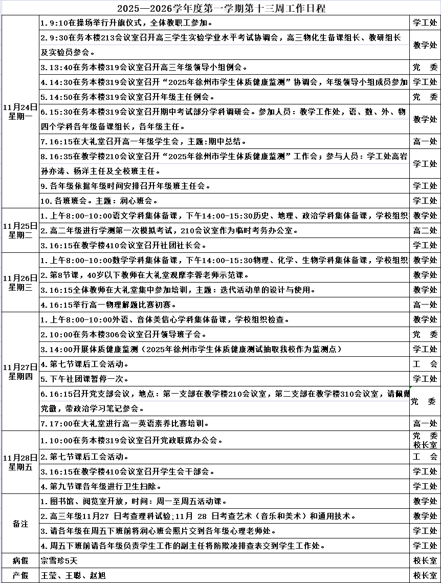 2025—2026学年度第一学期第十三周工作日程