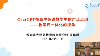 为提升工作室成员使用现代化教育手段的能力,紧跟数字化教学的改革的浪潮,2023年9月13日,徐州市崔文华高中英语名师工作室组织了主题为ChatGPT在高中英语教学中的应用的线上学习活动,聆听了深圳市英语教研员唐邦顺老师的报告。