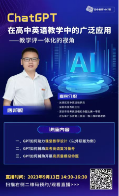 唐老师详细介绍了自己的教科研成果,对GPT如何助力课堂教学进行了模拟展示,唐老师还论述了在高考英语复习中如何使用GPT辅助,以及如何使用GPT开展高质量的命题活动。