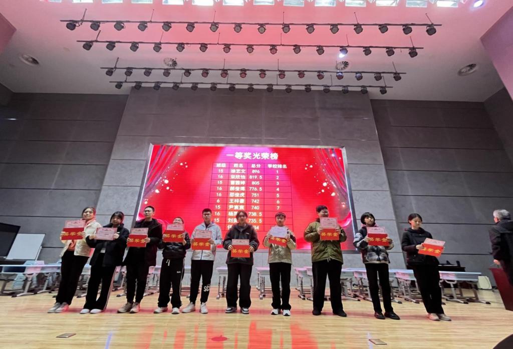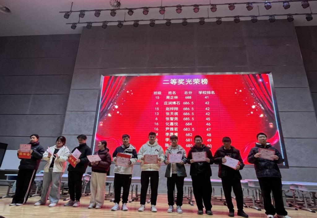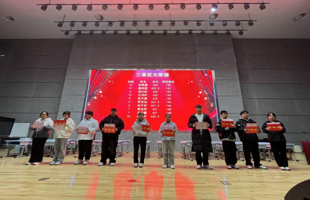 大会由高一年级宋端鸣副主任主持,他首先对本次期中考试整体情况进行全面分析。为激励学子争先创优,大会对成绩优异的学生予以表彰,共计200名学生获得表彰,其中20名同学获得一等奖,40名同学获得二等奖,140名同学获得三等奖。高一年级张望主任、孙亦涛副主任为获奖同学颁发荣誉证书,并向他们致以热烈祝贺。大礼堂内掌声不绝,既为获奖者的优异成绩喝彩,也凝聚着每一位同学砥砺前行、追求进步的初心。