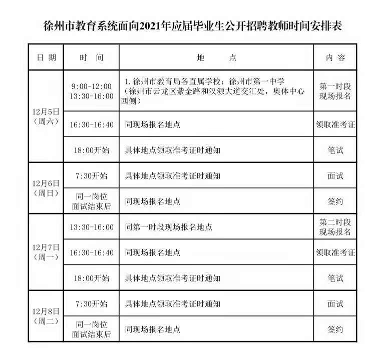 为做好徐州市教育系统面向2021年应届毕业生公开招聘教师工作,根据《徐州市教育系统面向2021年应届毕业生公开招聘教师公告》,现将有关事项公告如下: