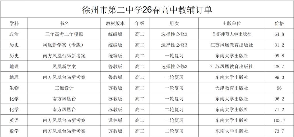 根据江苏省中小学教辅材料推荐选用征订相关规定及流程,我校严格按照“市级推荐、校级选用、自愿订购、公开公示”的原则,组织开展2026年春季学期教辅材料征订工作。现将相关情况公示如下: