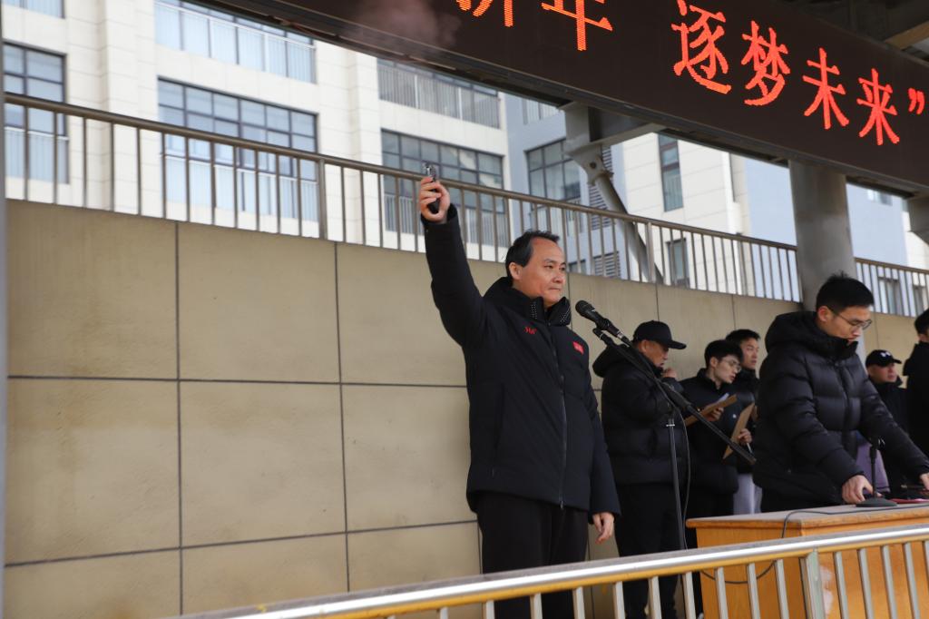 比赛在庄严而热烈的氛围中拉开帷幕。校党委书记王运思亲自鸣响“新年第一跑”发令枪,寓意全校师生以奔跑的姿态开启新一年的奋斗征程。各班队伍精神抖擞,步伐整齐,在经过主席台时高呼口号,展现出强烈的集体荣誉感和青春正能量。