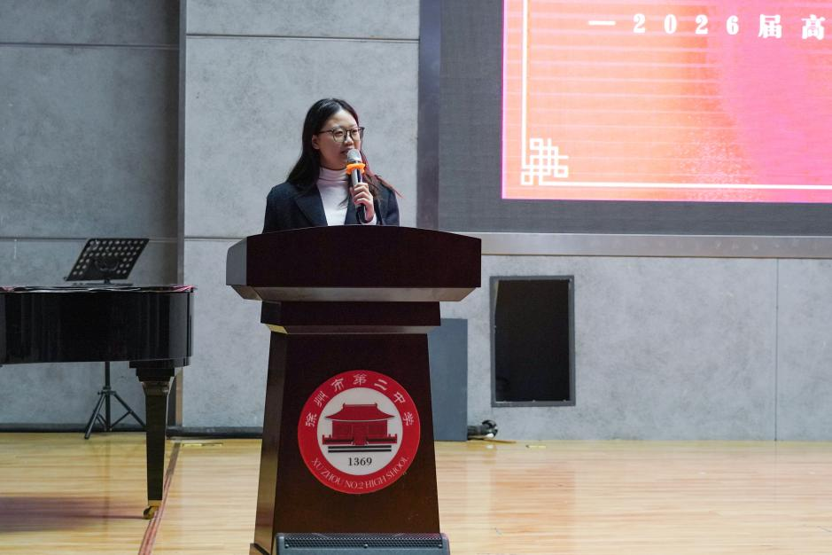 高三教师代表祖晓妍老师登台发言。她以三年来陪伴学生成长的点点滴滴为引,道出了师者心底最柔软的牵挂与最坚定的守望。她寄语同学们:最后的79天,要怀揣“大鹏一日同风起”的底气从容迎战,保持“每临大事有静气”的清醒智慧冲刺。“办公室的门永远敞开,走廊上的谈心可以随时开始。”朴实的话语中,是全体高三教师最深沉的责任与最长情的陪伴。