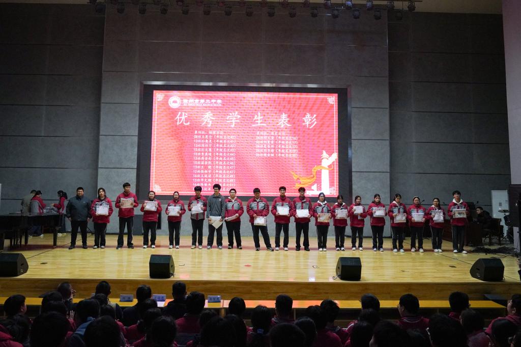 在激昂的乐曲声中,学校领导为在一质检中取得优异成绩的学子颁发奖状与奖品。荣誉的见证,既是对过往付出的肯定,更是对全体高三学子的有力感召。台上星光熠熠,台下目光灼灼,榜样的力量在无声中传递。