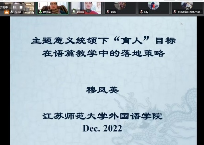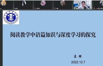 为提高广大教师的英语阅读教学水平,进一步领会新课程新教材新考试的内涵,提升英语教师专业素养和教育教学水平,工作室于2022 年 12月 7日下午举行主题为“三新背景下英语阅读教学”的研讨活动。本次活动以线上形式在腾讯会议进行。徐州市高中英语名师工作室成员、刘丽霞初中英语名师工作室和石斌初中英语名师工作室成员等参加了这次会议讲座。