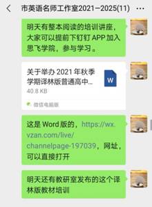 为深入学习习近平总书记以“四有”教师为目标做好学生“引路人”的指示精神,全面贯彻立德树人的教育方针,推动工作室成员对英语教学整本阅读有效教学方法的研究,提升工作室成员的阅读教学水平。崔文华高中英语名师工作室开展了“中学英语整本书阅读”网络研讨活动。活动分为两个阶段第一阶段工作室全体成员参与8月20日上午8:30-11:00外研社“思飞学院”有关英语整本阅读网络学习。