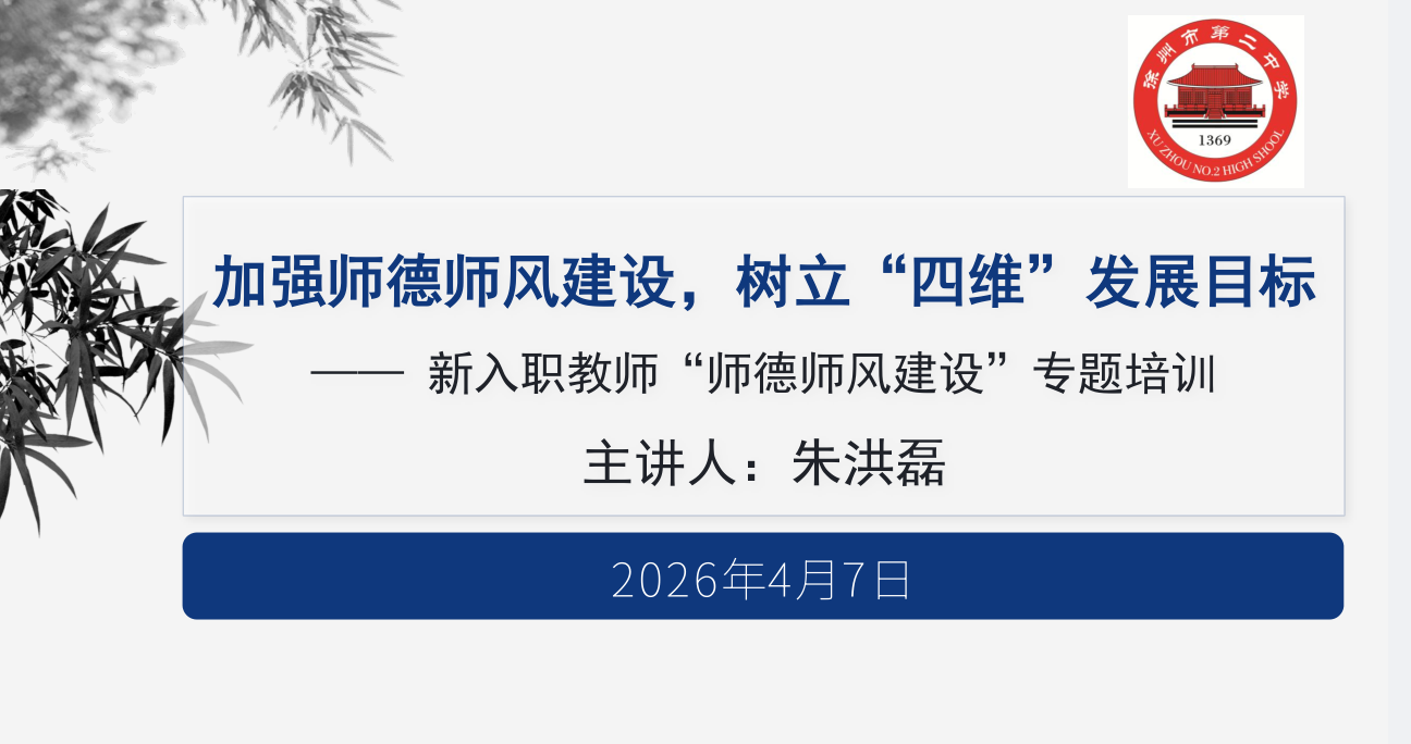 为帮助新入职教师深刻理解教师职业内涵,明确师德行为准则,2026年4月7日上午,徐州市第二中学组织开展新入职教师师德师风专题培训。