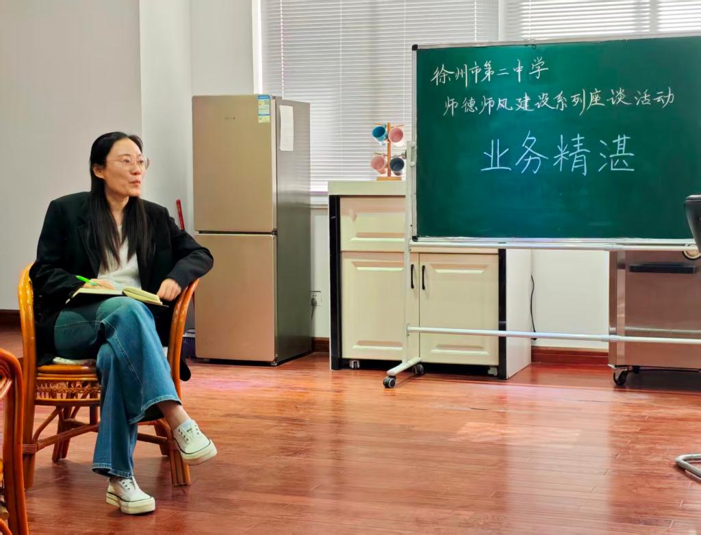 为持续推进我校教职工“身心健康、师德高尚、业务精湛、爱岗敬业”四维发展目标落地生根,夯实教师专业根基,提升育人核心能力,2026年4月15日下午,学校工会在教工书吧如期举办师德师风建设系列座谈活动第三场——“业务精湛”专题座谈。